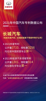 2021年公开3710份专利 长城汽车获年度专利公开、授权量双第一